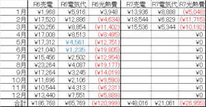 あわせて前年度との買電・売電金額の比較を確認してみます。